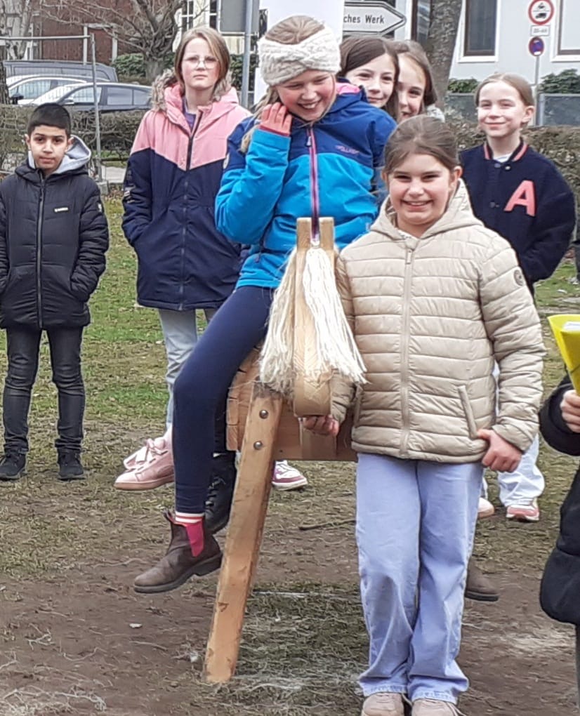 Seit einigen Wochen steht auf der Wiese vor unserer Schule ein tolles neues Holzpferd.